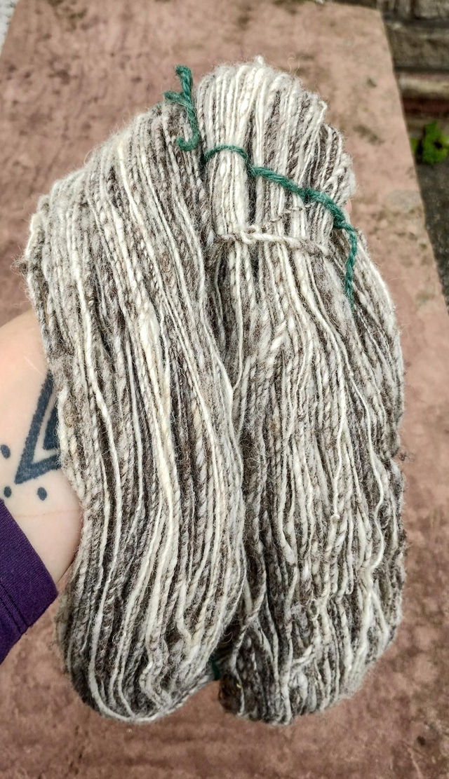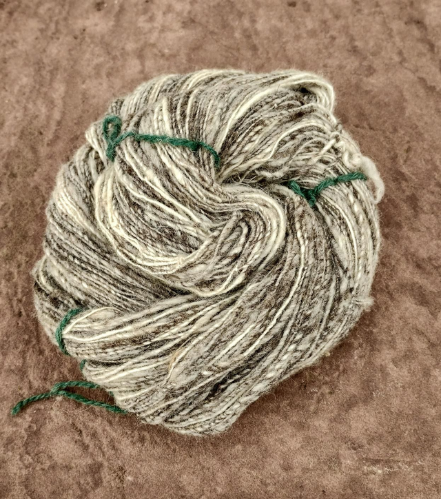 Écheveau de laine mélange de toisons écrues et grises de 150gr en single (1 brin)